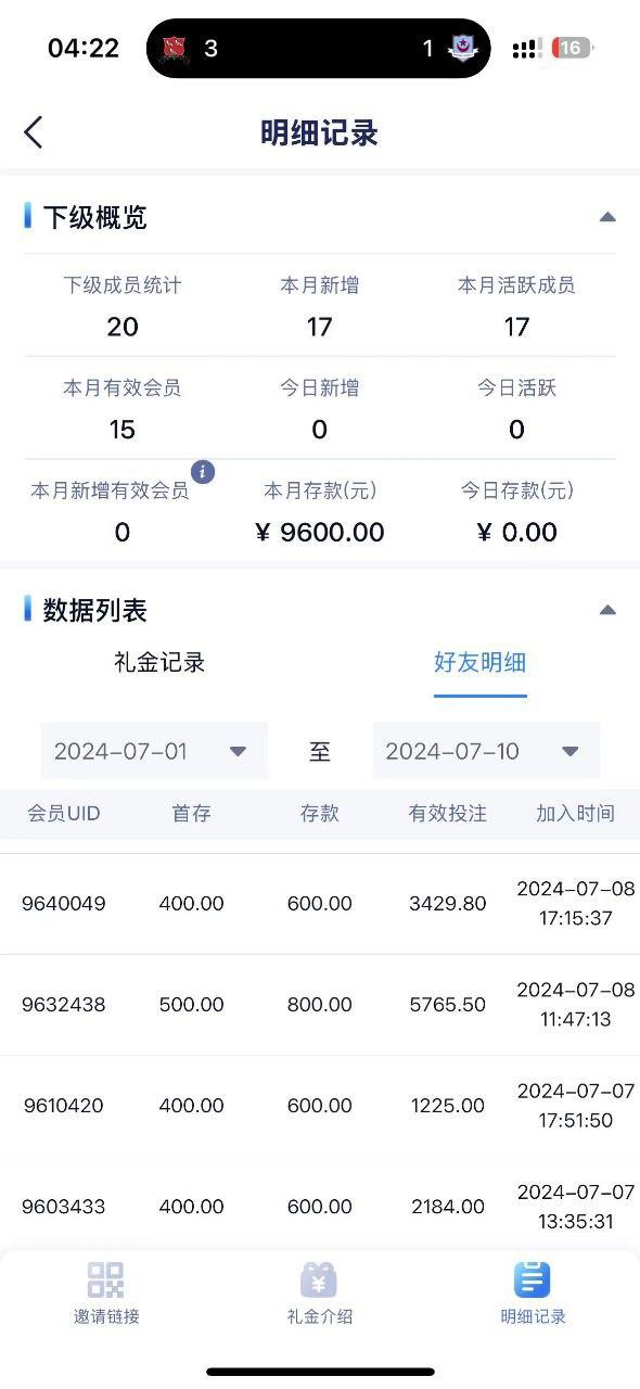 南宫黑平台不发放邀请礼金,我在南宫邀请15个用户,其中多数连续两天充值超过500元,有效流水达2000-5000元,但结算时被标记为一次性用户,未获礼金22500元。另有一人同样情况却获礼金,现多次邀请未获奖励,提醒用户勿在南宫拉人。