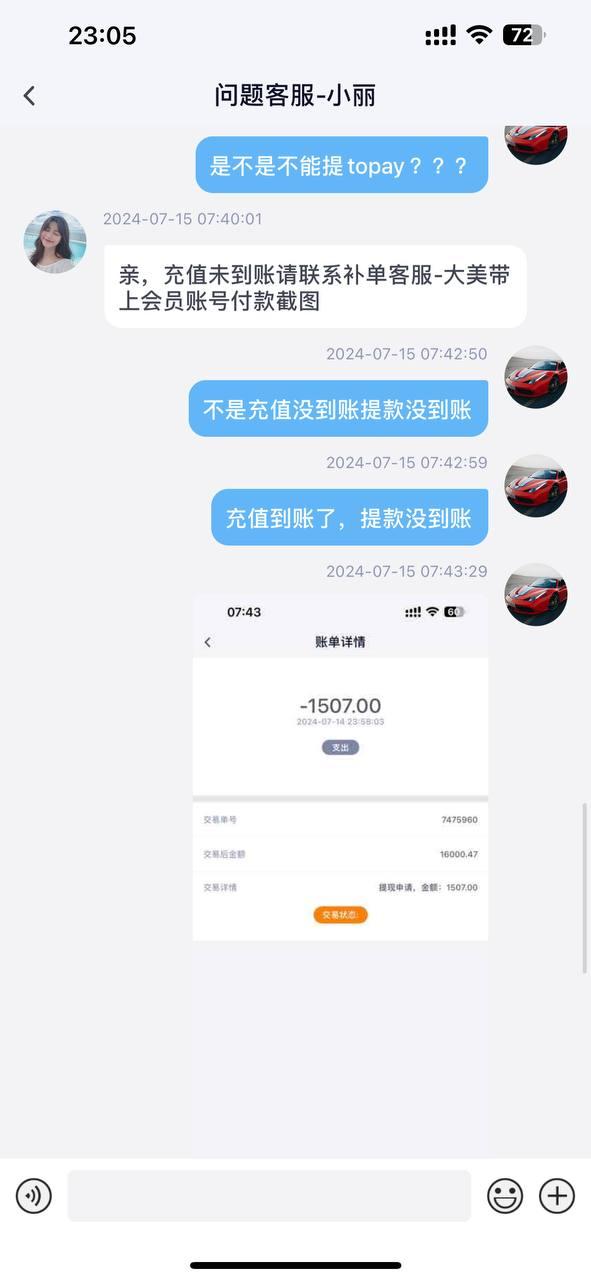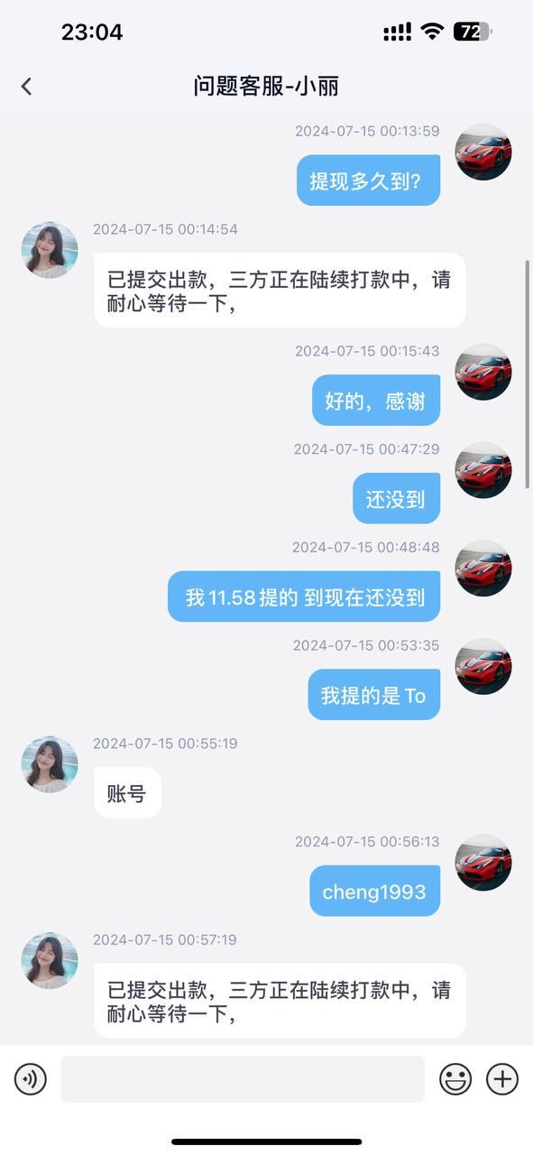 本人2024年7月3日 充值1000 打圆梦娱乐 然后陆陆续续玩了14天 慢慢的打到了1.7万,从7.3到7.14一直都在打电子,没有任何违规操作,现在账户余额1.7万,提现不给出款!直接把我卡在提现通道。找飞机圆梦合营部,客服回应提现问题 让我去找平台在线问题客服,平台客服不回复。我是7.15号凌晨12.03提现1507然后余额还有16000 平台客服回应 已提交出款 三方正在陆续打款中,请耐心等待 ,到了第二天我又问了在线客服 ,在线客服又回复了请耐心等待,今天都7.16号了还没到账,问客服要我上级的联系方式也不给,我现在找不到帮助,现在很无助 平台客服不回复 我也没有上级。我只玩PG电子任何违规都没有,哪里出问题了?不给出款是不是我充的太少了打上去了,你们要准备黑掉这个款?我玩这个7 8年了第一次被黑。赢了钱不给出输钱了怎么都行?格局能不能打开?才1万来块钱,5月15圆梦娱乐刚开的,这才不到2个月 这么大的公司。1.7万都准备要黑了吗?给出款就给出款,不给出款说就行了,一直躲避问题,没人处理?一个平台连一点信誉都没有以后谁还敢玩?