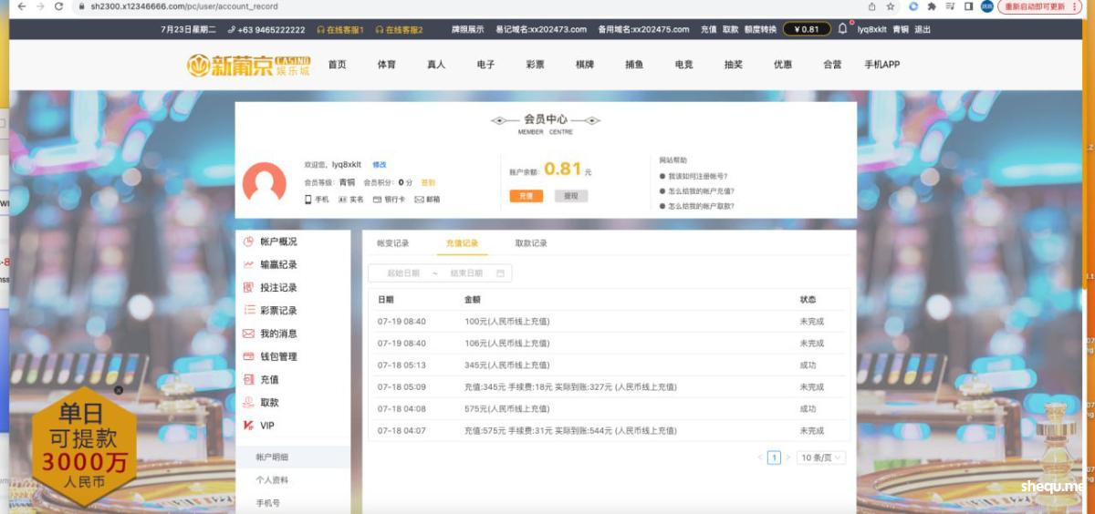 本人7月18号在网站注册到新葡京娱乐,充值两次,第一次输完,第二次充值赢三千来块,提款一直未到帐,询问客服一直是正在审核中,问客服需要配合什么,还是我到底那里违规,还是回答审核中。现在菠菜连一千都要黑吗,通过客服,知道此公司在菲律宾,请大家避坑。这是哪家傻逼公司,做百度推广,我以为起码有点格局,狗庄是真的黑啊