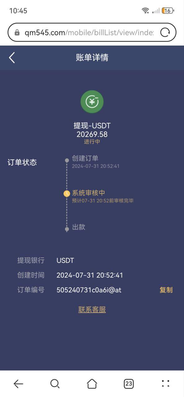 上来还是以往大手大脚的下注方式 这次充了大概有7~8万,账户负盈利,昨晚8点多提现了两万,提现一直没有审核,今天账户还有22400,官方一问的态度就是让等游戏平台方审核,之前虽然也有过审核经历,但是没有这么离谱这么久,这次算是认栽了,账户里面里外里5万块钱,吃相就这么难看,在你们这大号都v12了