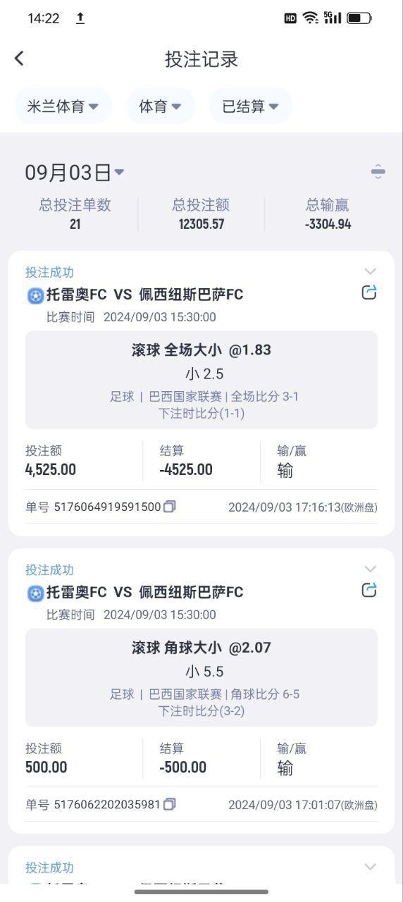 米兰体育诈骗 杀猪会员 昨天巴西比赛,89分钟下注小2.5,结果96分钟还是1-1。后面时间91分钟3-1就变成勒3-1。专员回复说比赛中断关了盘了,实际没有关盘,下注大2.5  大3大3.5/4全部取消,下注小的全部确认。一场比赛拼接视频来诈骗,杀会员,把会员杀了还叫不要曝光,还要会员给他们掩护。全程就是在拖处理事情过程中间还叫会员继续充值玩,准备黑一波。