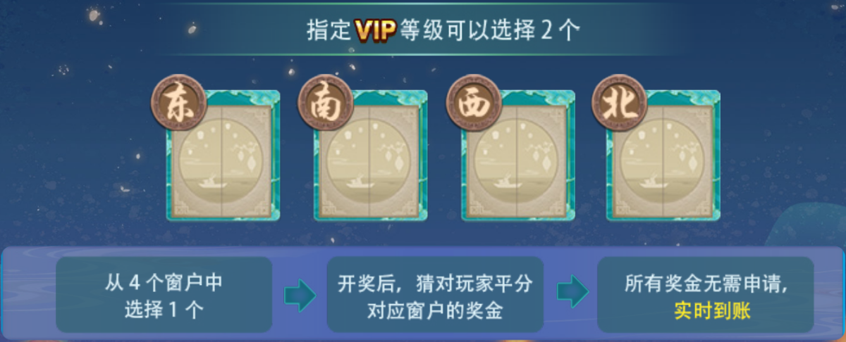 b)「VIP 场」:  i. VIP 1-3 的玩家 4 选 1  ii. VIP 4-9 的玩家 4 选 2