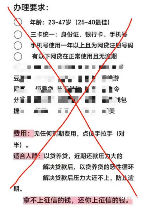 前几天就有个小伙伴说自己还没有逾期,但是感觉自己已经还不起了,就继续想找网贷继续申请来填前面的窟窿,结果就有一些做贷款的找到他说可以帮他申请一些不用还并且不上征信的高炮网贷来填上征信的贷款,但是申请下来的贷款要五五分账!