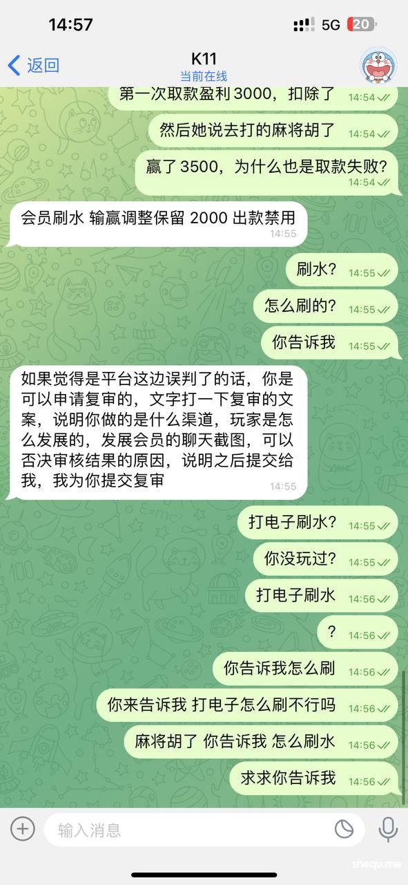 前两天在米兰体育开了代理线, 喊身边朋友去玩, 今天朋友首存2000,赢了3500然后进行提款, 被客服告知违规操作 违规套利 违规下注。我就搞不懂了 pg麻将胡了 怎么个违规套利。违规下注法, 真的是天大的笑话, 电子有违规下注这么一说。 希望大家可以好好的审视一下自己做代理的平台,别到时候辛苦一个月佣金拿不到手, 我这几千块钱都是小钱, 大家好好审视一下自己合作的平台, 这种垃圾平台真的没有必要在合作下去, 新用户 存款2000,赢3500都不给出款。 这种平台真的是格局太小。难道只能输,不能赢吗, 我希望大家还在玩的多多注意。