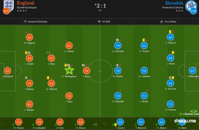 英格兰VS斯洛伐克 WS评分 |WhoScored