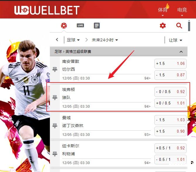 【WELLBET吉祥坊】英超 埃弗顿 VS 狼队 (埃弗顿-0 / 0.5)